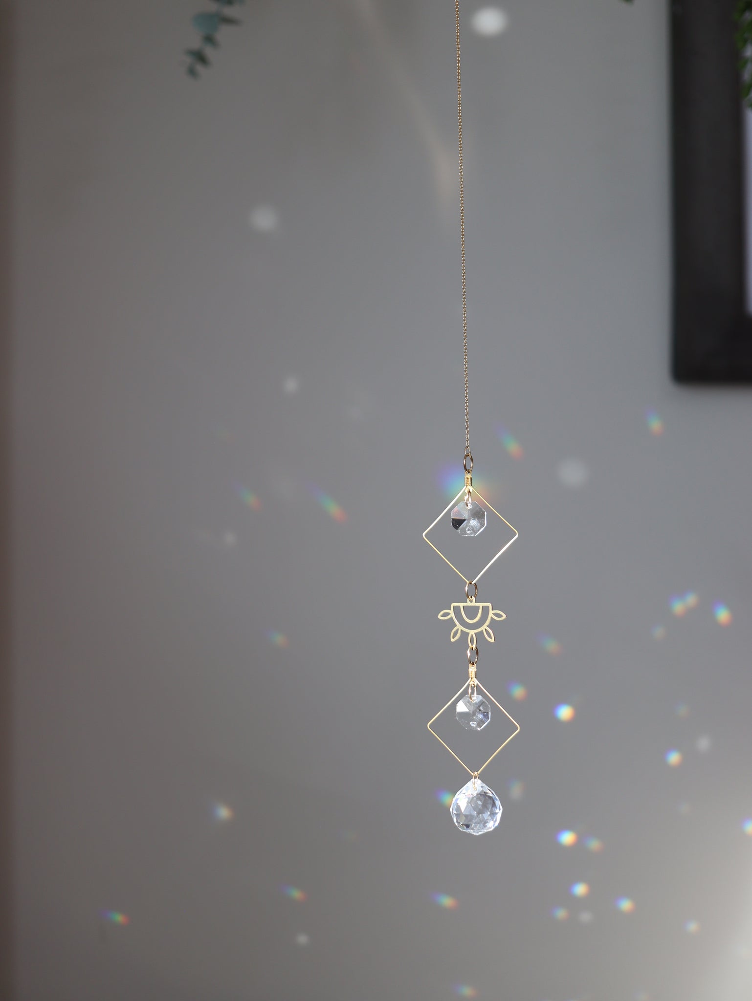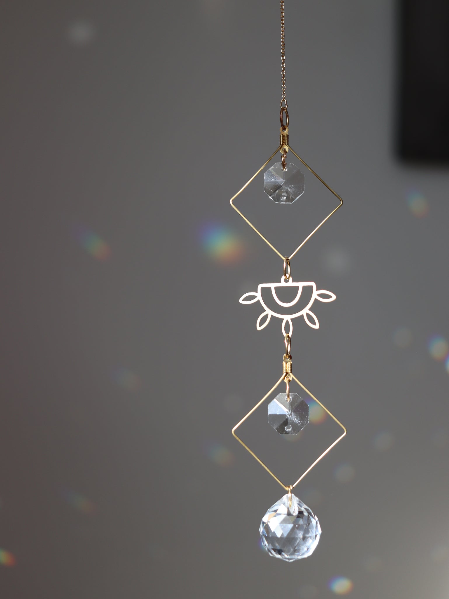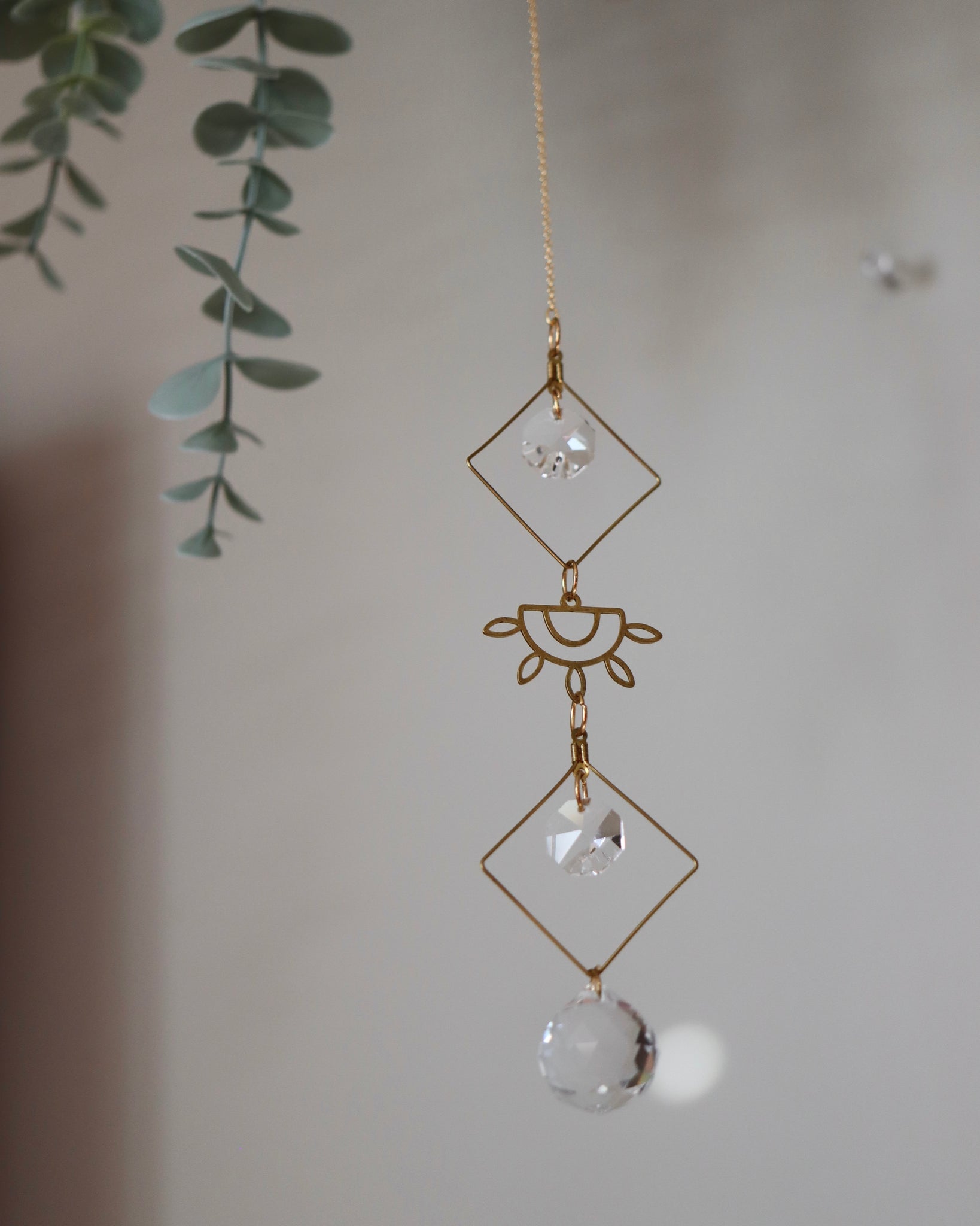 Fait à la main en laiton, ce capteur de soleil est orné de cristaux facettés qui captent et diffusent magnifiquement la lumière naturelle. Son design délicat avec l’œil doré apporte une touche bohème et lumineuse à votre décor. À suspendre près d’une fenêtre pour créer de doux reflets scintillants. ☀️✨