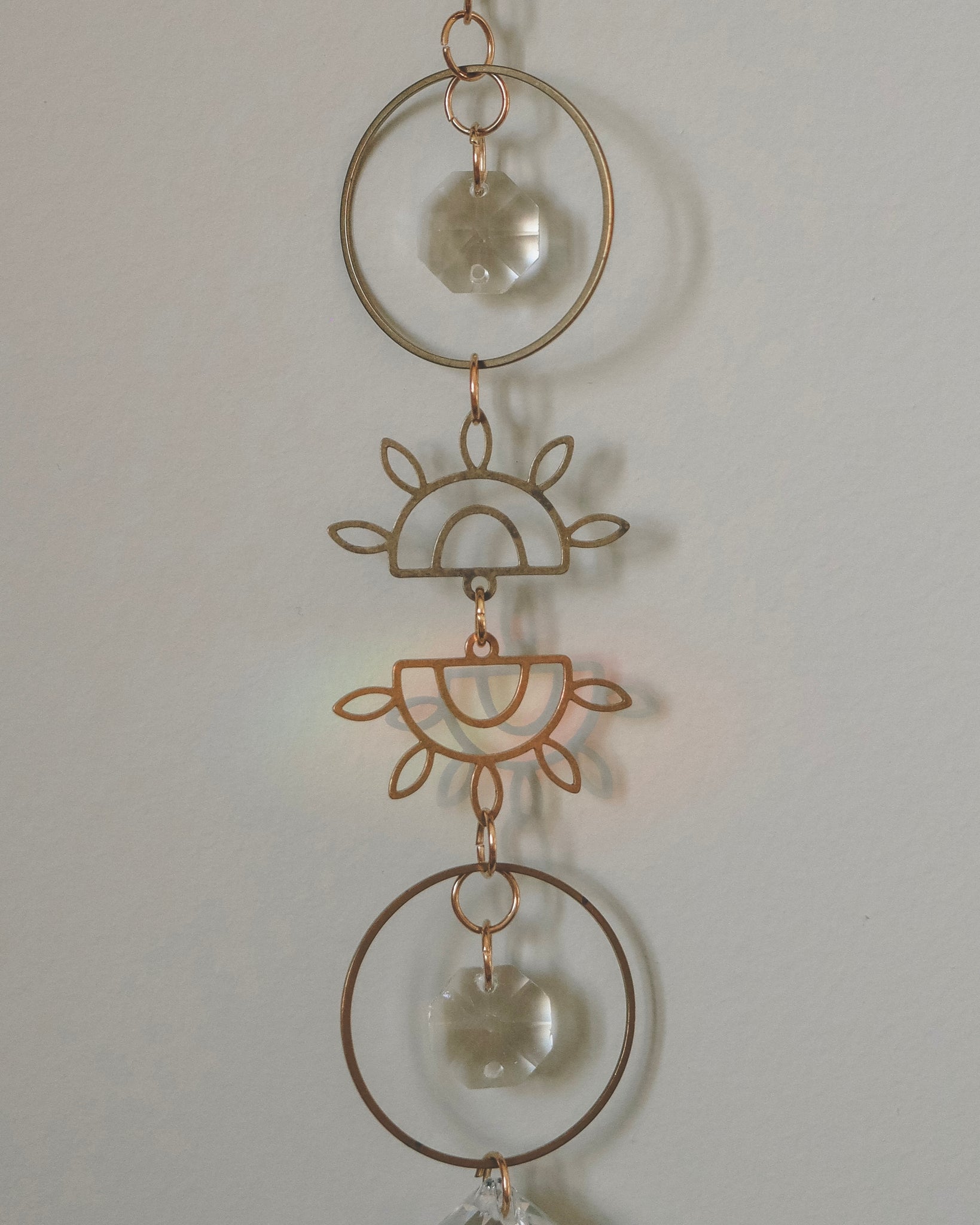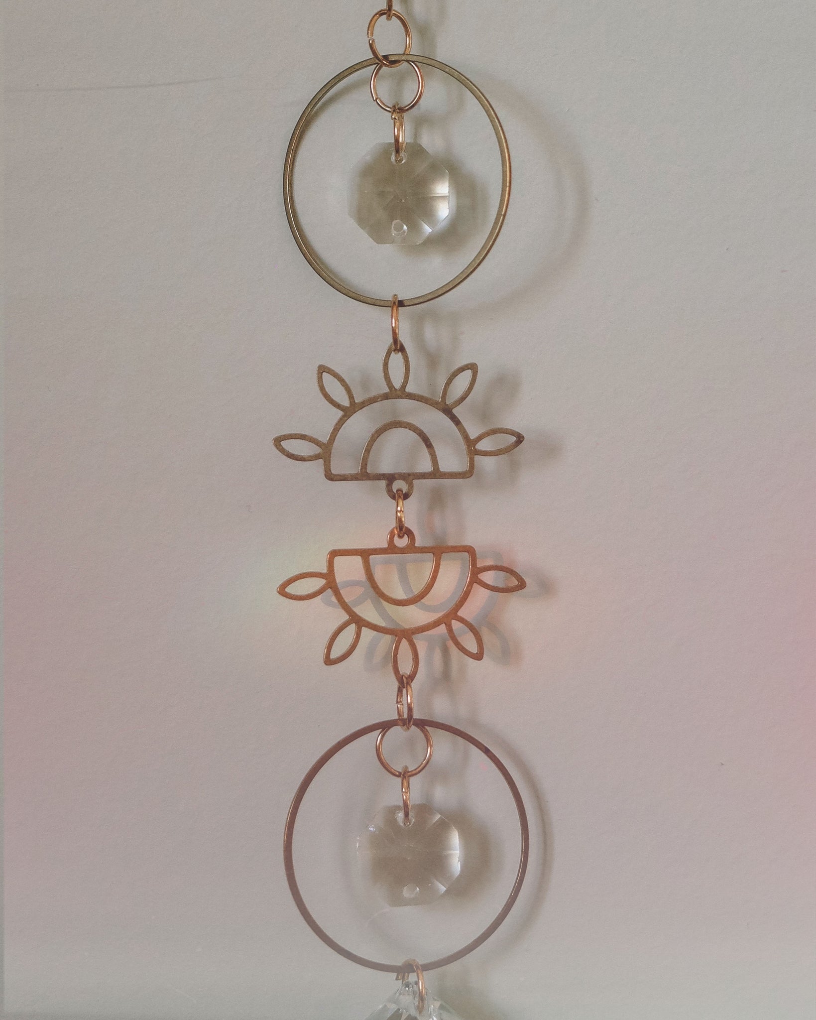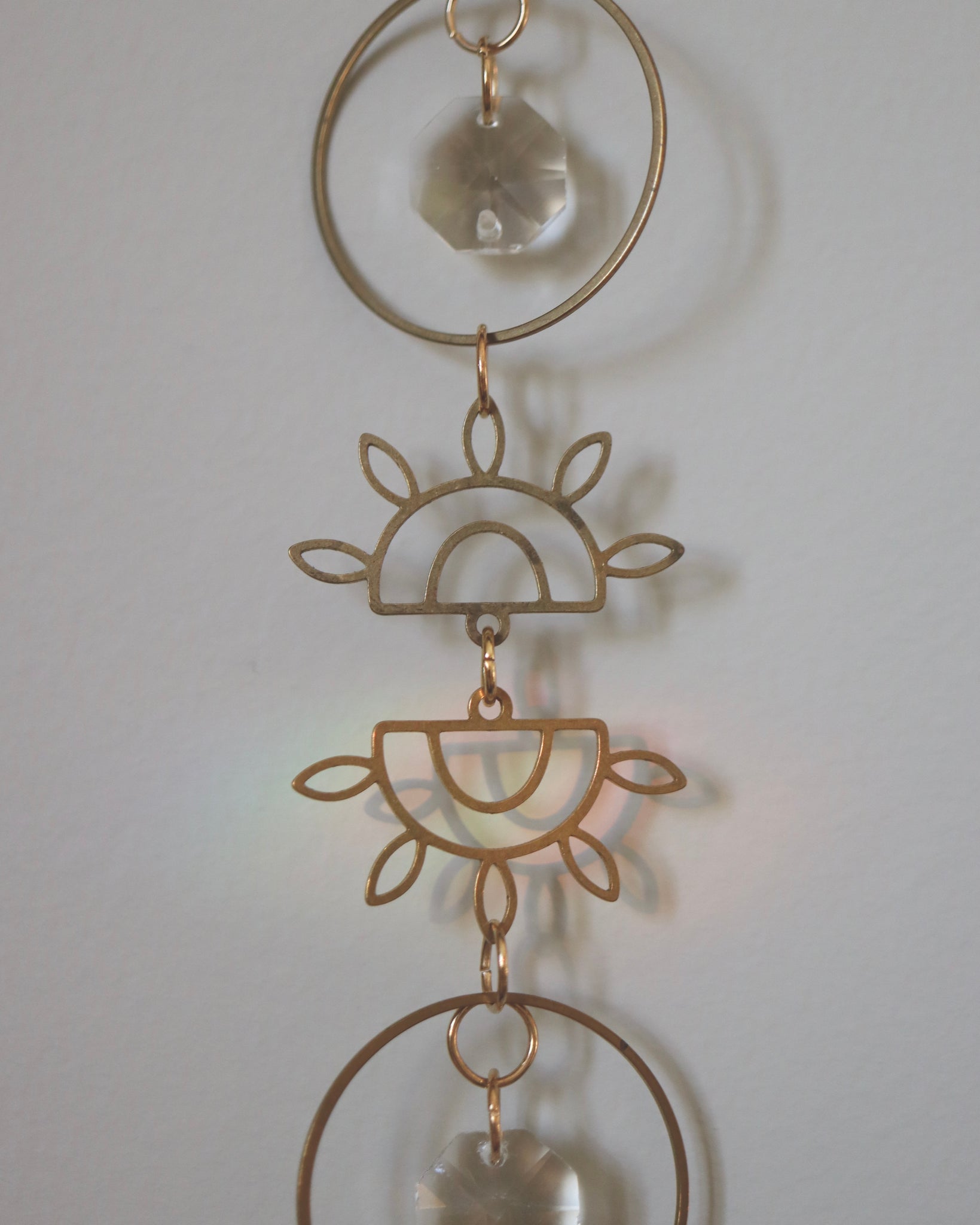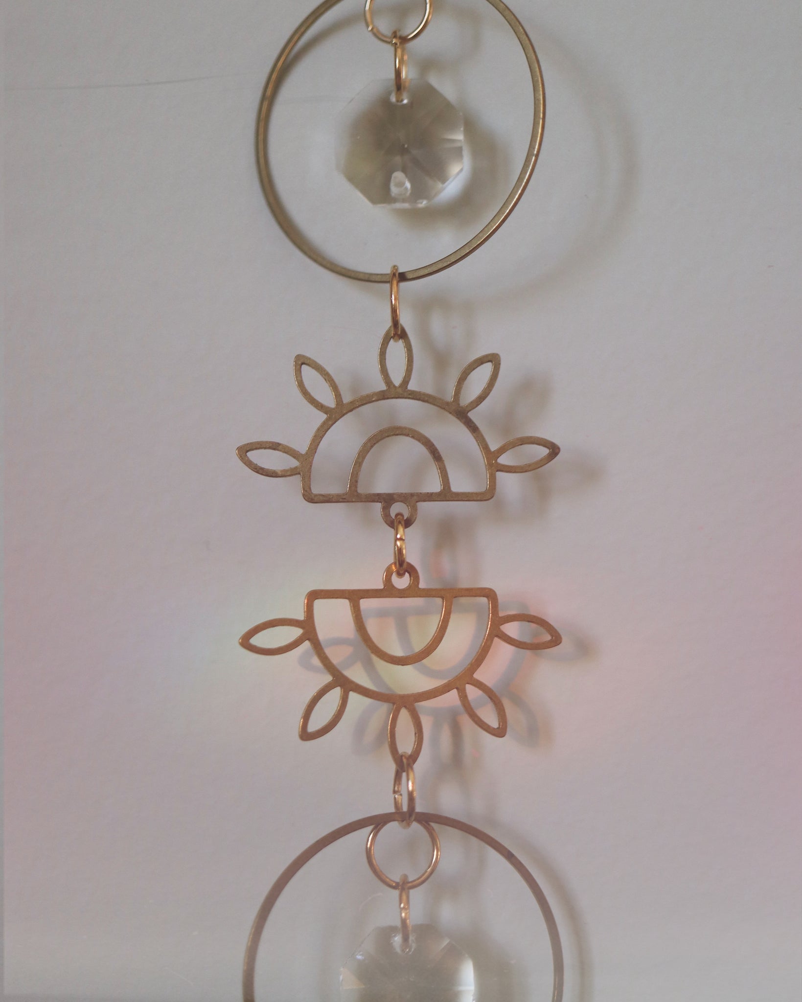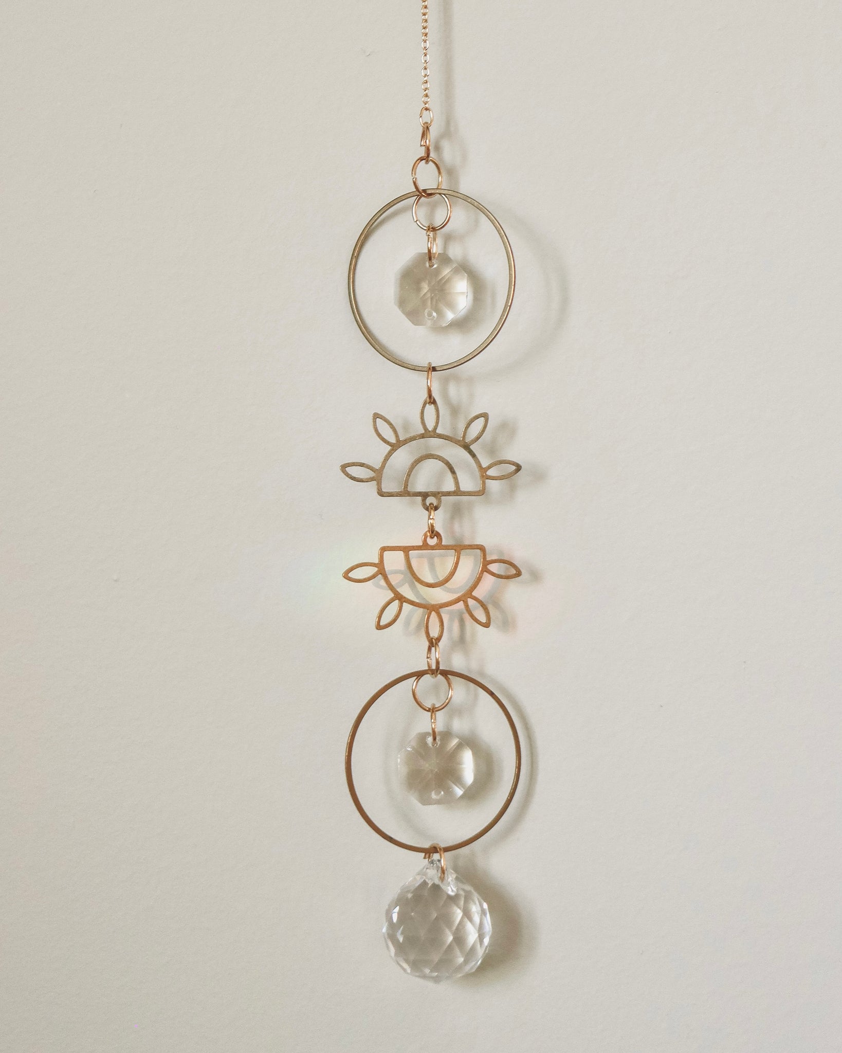 Fait à la main en laiton, ce capteur de soleil est orné de cristaux facettés qui captent et diffusent magnifiquement la lumière naturelle. Son design délicat avec l’œil doré apporte une touche bohème et lumineuse à votre décor. À suspendre près d’une fenêtre pour créer de doux reflets scintillants. ☀️✨